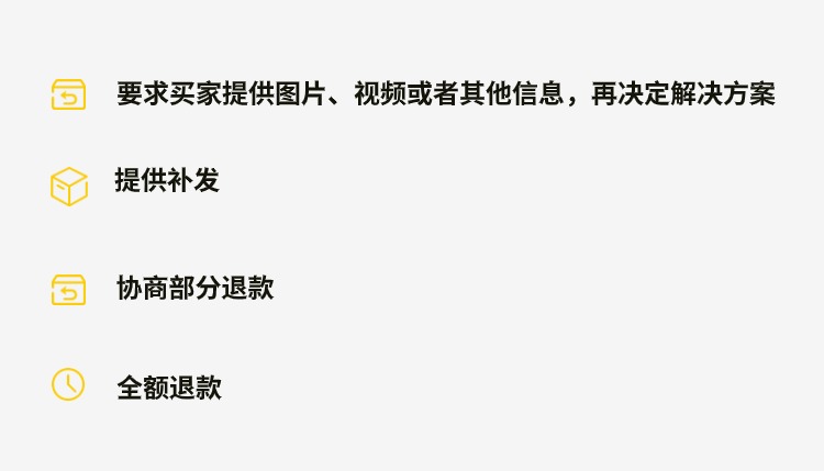 客诉如此重要。而处理客诉的宗旨在于,解决买家遇到的问题。总结下来,一般商家会选择的处理方式主要有以下几种: