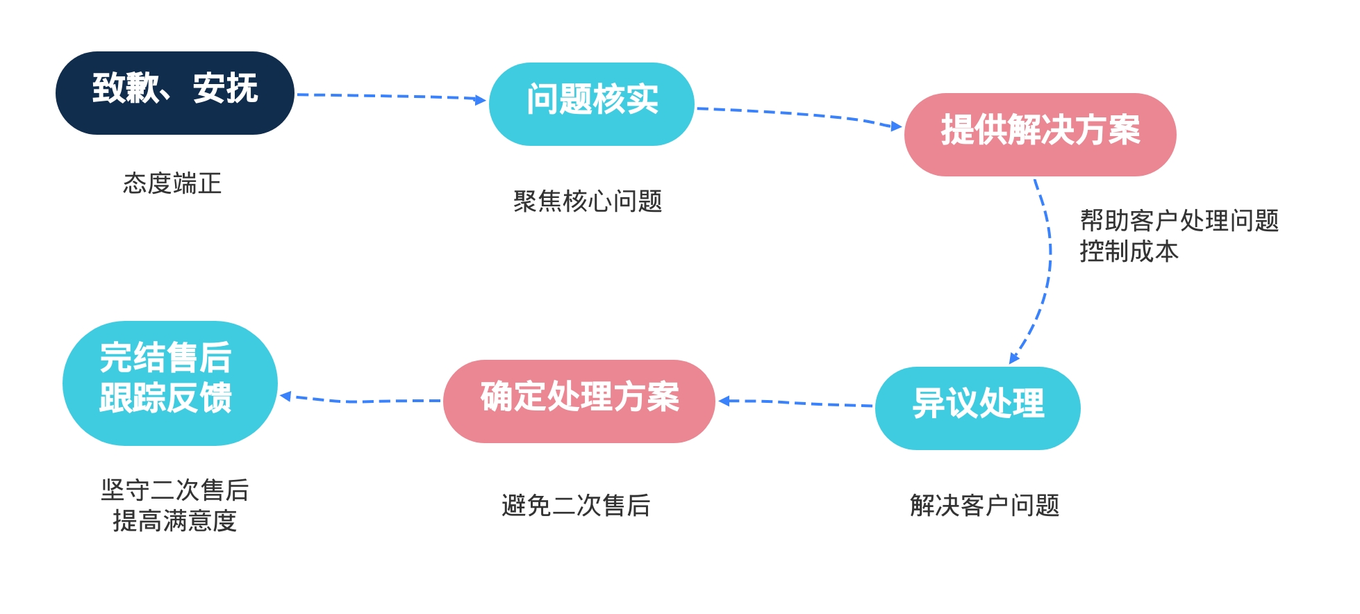 需要特别说明的是,客诉问题处理流程的第一步,一定是致歉安抚。“先解决情绪再解决问题”是处理客诉的基本原则。