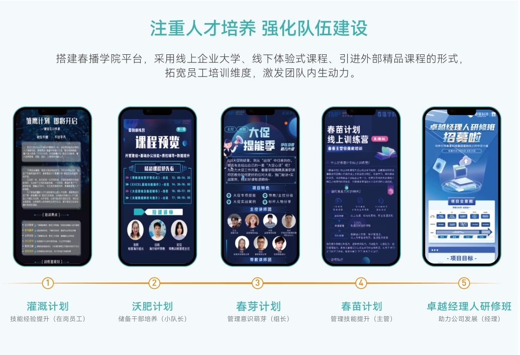 春客科技拥有完善的管理梯队架构,实时性奖惩制度,多模式成长路径,打造稳定的客服团队。同时依托春播学院和教练式辅导,快速提高员工业绩指标达成能力,确保客服在专业能力合格基础上同时拥有对产品深入了解。