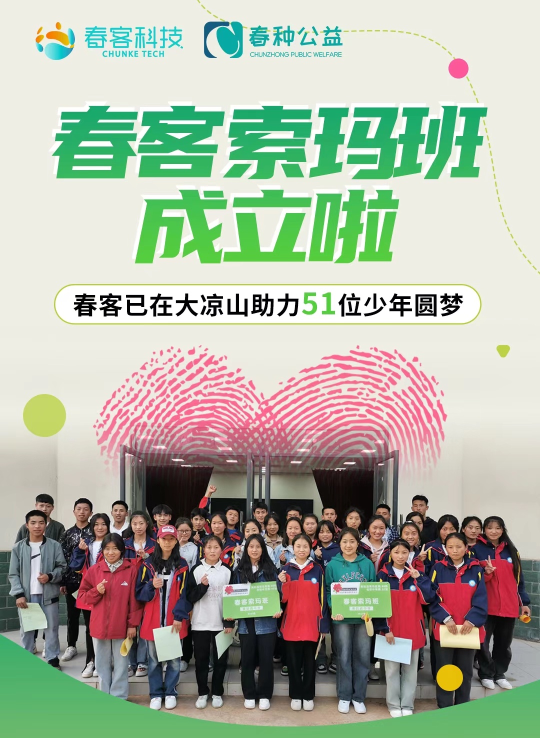 2023年,春客人走进大凉山实地助学,来到四川索玛资助了51位高中生完成学业,为3000+应届毕业生/实习生提供就业岗位,向甘肃地震灾区捐赠35万元.......