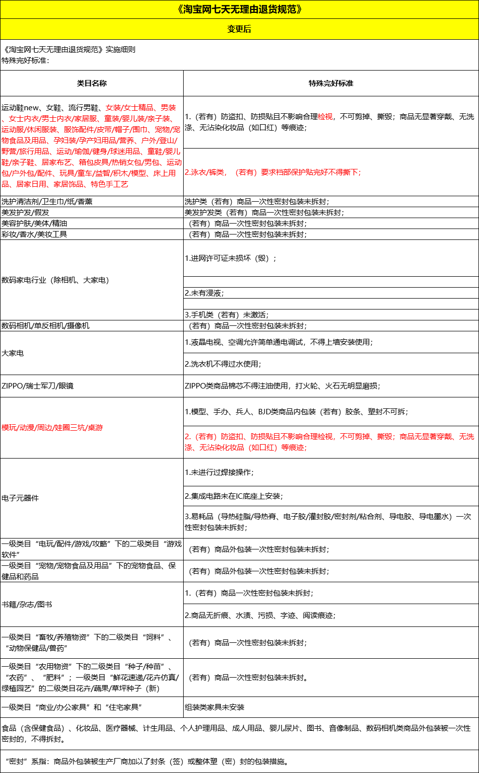 为了保障买卖双方的权益,维护市场秩序,帮助买卖双方更好地解决商品交易过程中的纠纷,淘宝网拟变更《淘宝网七天无理由退货规范》中关于商品特殊完好标准的内容。